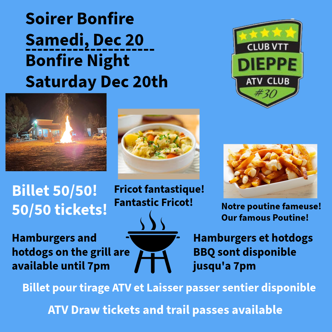 Bonfire - Saturday, Dec 20, at the WINMAR Shelter in Dieppe
