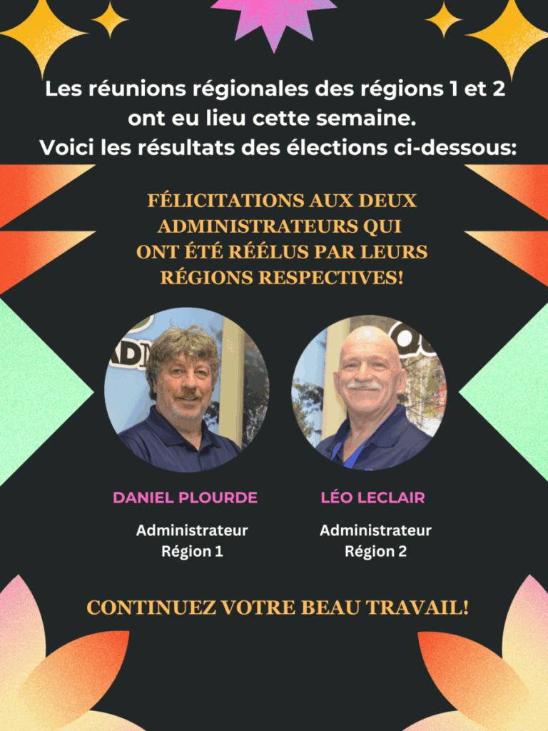 RÉSULTAT DES ÉLECTIONS POUR LES RÉUNIONS DE RÉGION 1 ET 2