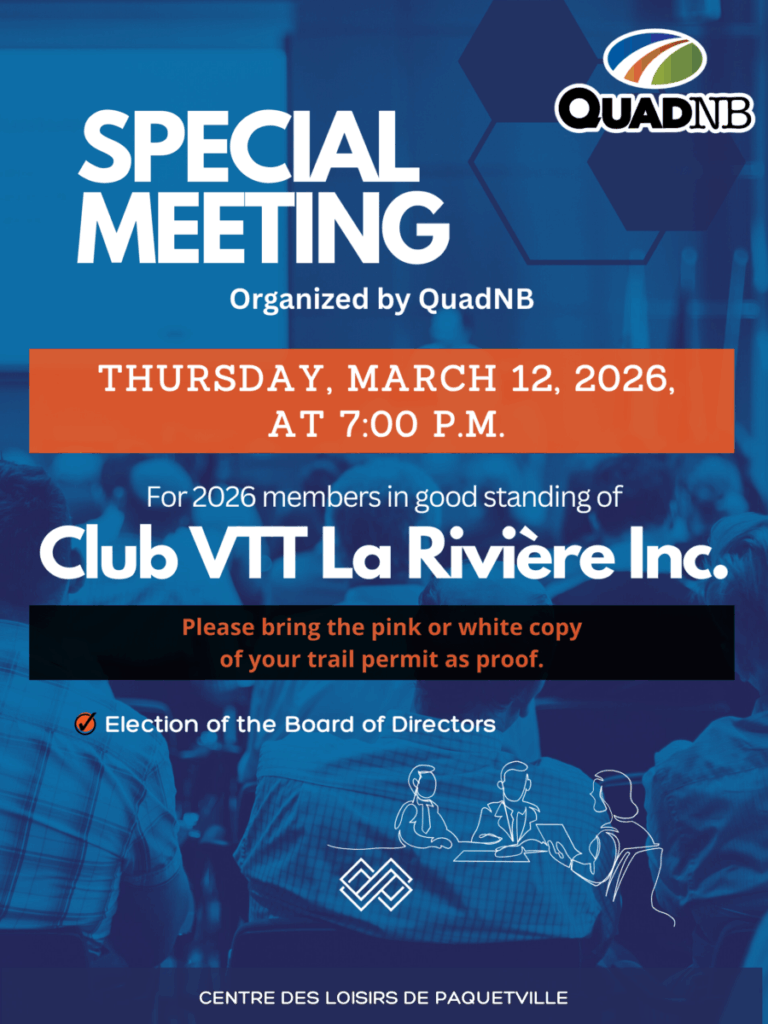 SPECIAL MEETING - CLUB VTT LA RIVIÈRE INC.